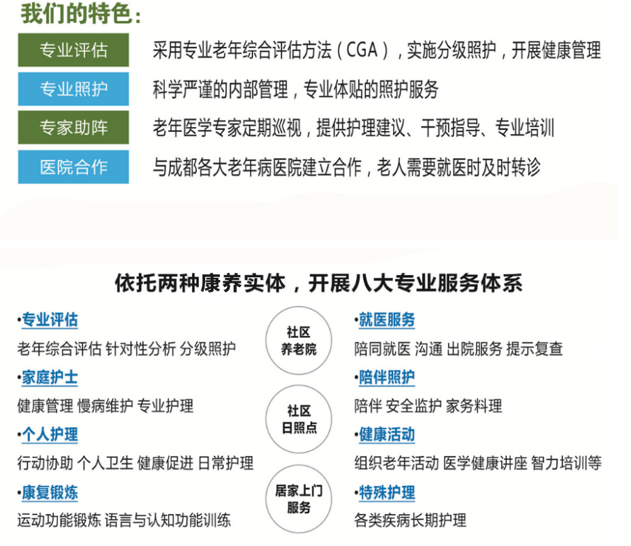 成都怡倍康養(yǎng)老服務(wù)有限公司是一家按照“康養(yǎng)結(jié)合”模式運(yùn)營(yíng)的專(zhuān)業(yè)化養(yǎng)老機(jī)構(gòu)。我們與四川大學(xué)華西醫(yī)院老年醫(yī)學(xué)中心合作,專(zhuān)注于社區(qū)養(yǎng)老,并在實(shí)踐中堅(jiān)持關(guān)注老年人身心健康。